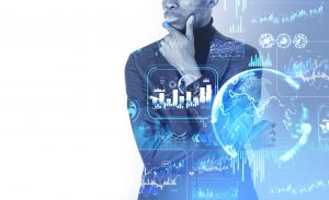 Home » 2022 Annual Report » African businessman, graph chart with lines and numbers, earth globe. Copy space