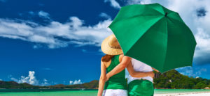 Home » Home » Couple in green on a beach at Seychelles